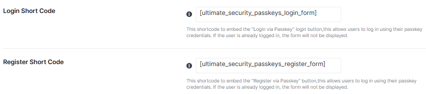 This shortcode allows you to place a “Login via Passkey” button anywhere on your site, such as custom landing pages or sidebars.